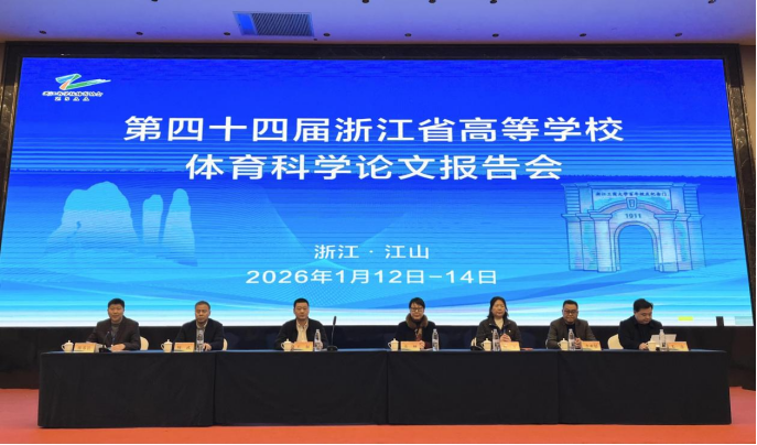 2026年1月12-14日,由浙江省学校体育协会、浙江省高等教育学会体育教育分会主办,体育博彩平台大全 承办,江山市教育局协办的第四十四届浙江省高等学校体育科学论文报告会在江山市举行。来自全省53所高校的240余名教师和学生参加了本届科报会。江山市副市长王展,浙江省学校体育协会常务副秘书长姜丽、陈平,浙江省学校体育协会教科研负责人、浙江水利水电学院体育部主任李亚慰,杭州师范大学体育学院院长周武,体育博彩-体育博彩平台大全 主任郑苏法,江山市教育局局长毛彦等出席开幕式。